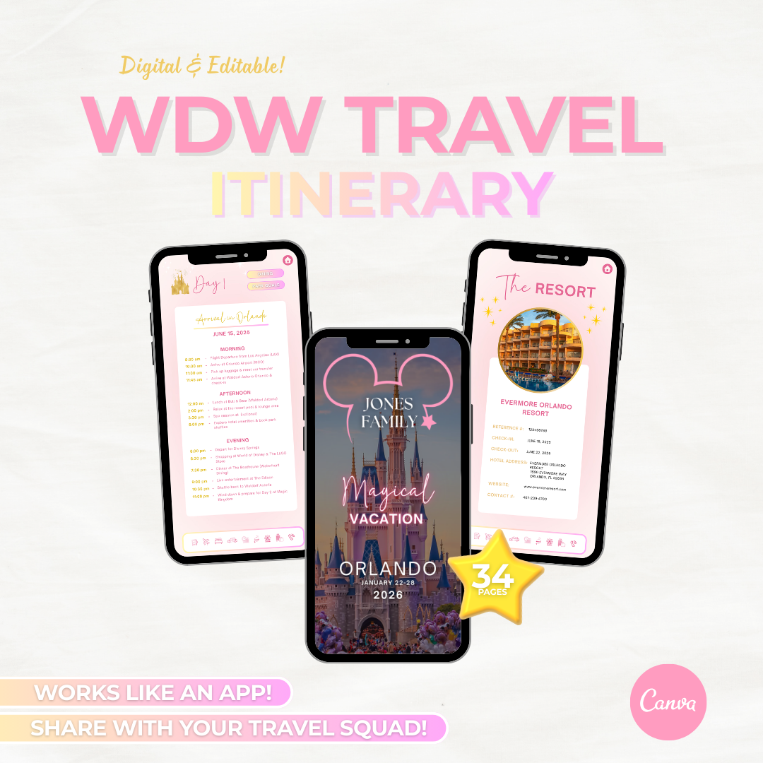 Travel Itinerary Template: 50-Page Mobile Travel Guide for Trip Planning & Agents (Canva)